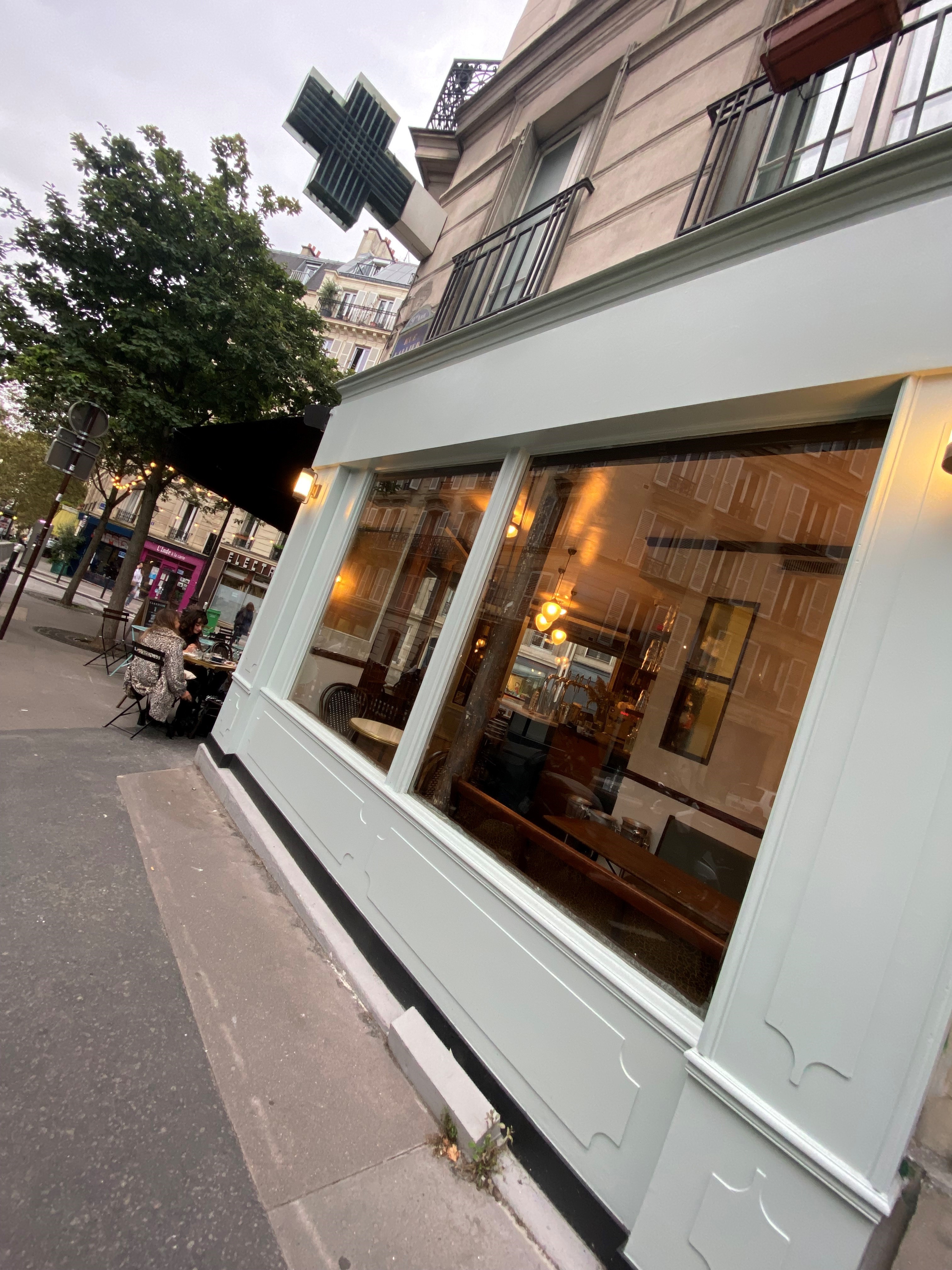 The Classique Café, located at 1 rue Lallier in Paris near Pigalle, was once a pharmacy. Today, it retains some of its old-world charm with its blue-green facade and green crosses inherited from the former pharmacy.
