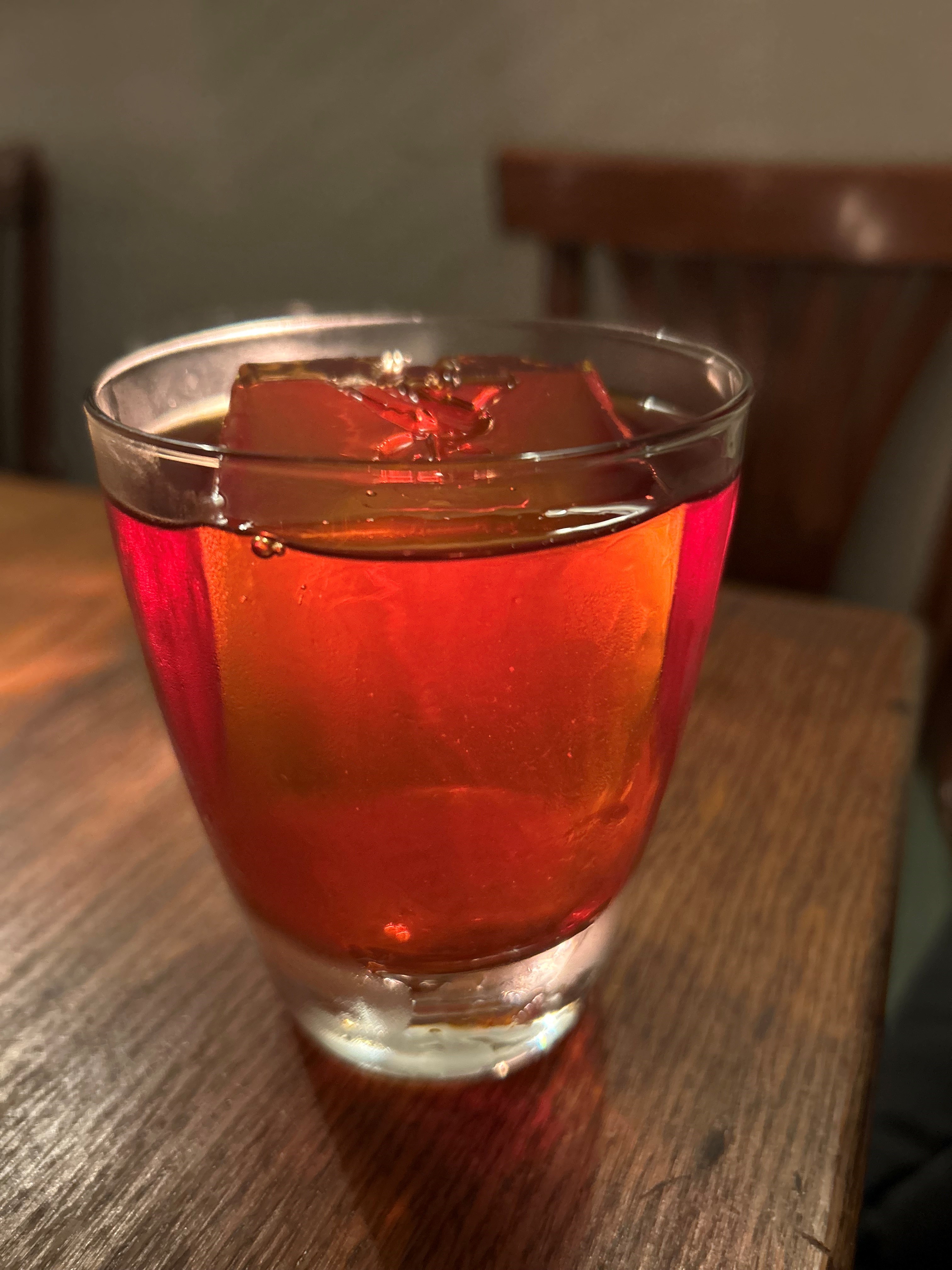 Cap Mattei Grande Reserve Red, Grenache Cordial, Red Tea, Beetroot Caramel, Siren Rosso, Lime, Cocoa Bitters, Mint.