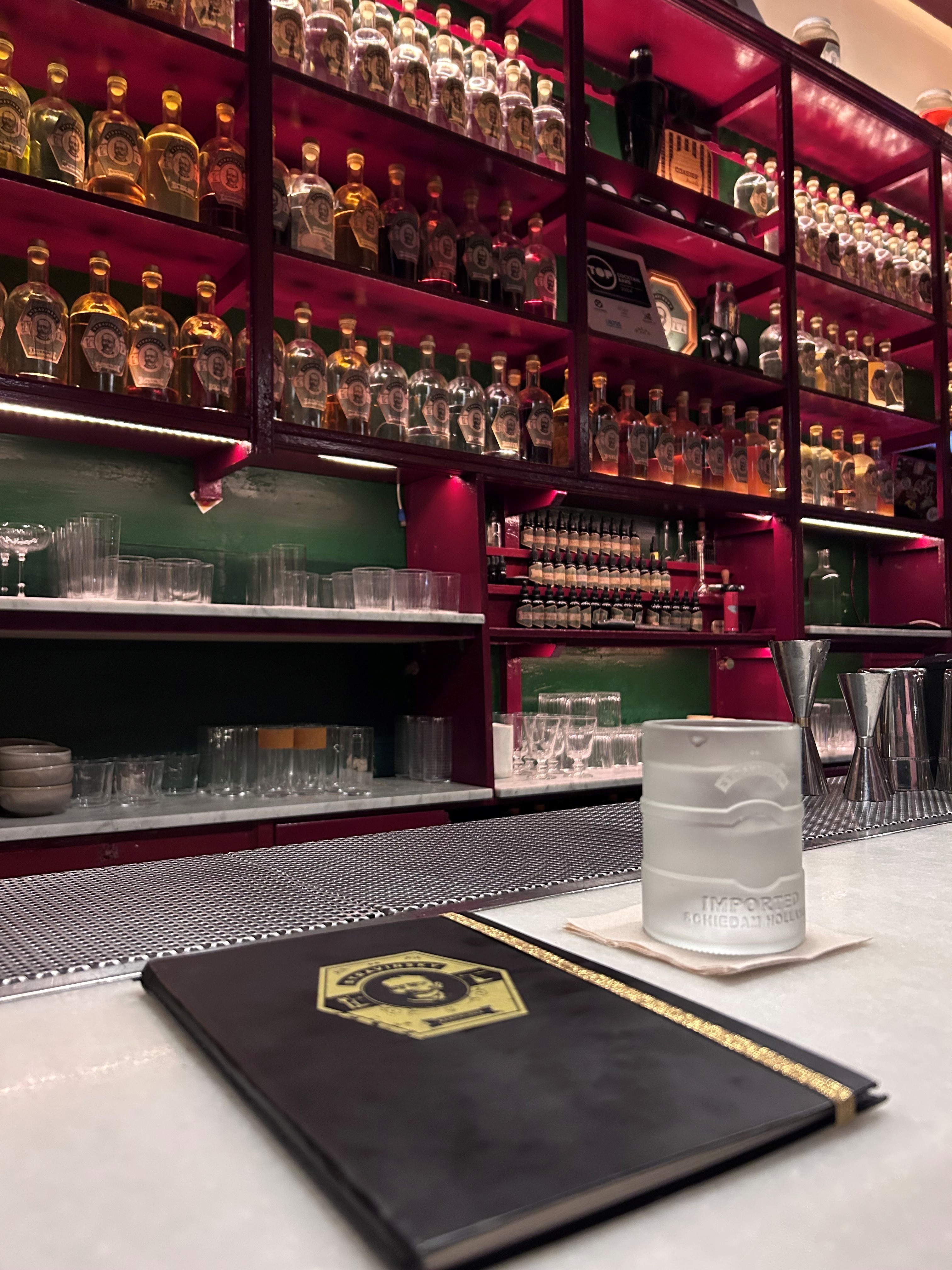 Dr. Stravinsky is renowned for its experimental and artisanal cocktails, with nearly 80% of ingredients made in-house. The bar has consistently been featured on the World’s 50 Best Bars list. Notably, the bar emphasizes the quality of ingredients and does not display brand names on the barback, highlighting their artisanal approach.