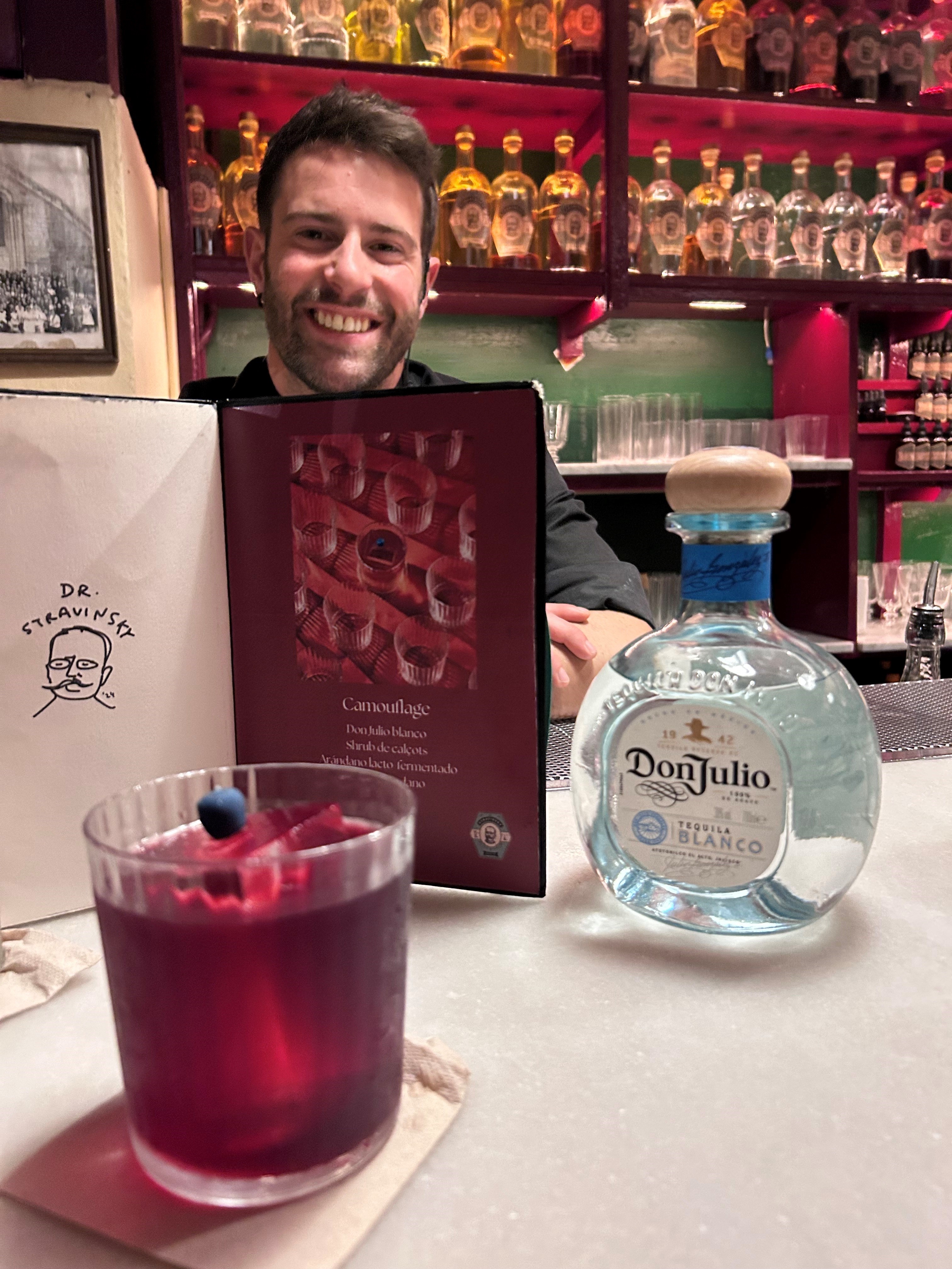 Davide Norcini: Of course! My name is Davide Norcini, originally from Florence, Italy. I’ve spent the last ten years living abroad, so while I’m Italian, I have a bit of an international vibe. I used to work in London, but now I feel at home in Barcelona, where I’ve lived for seven years. Although I love Florence, Barcelona feels more like home to me now. I’ve been with Dr. Stravinsky for three years, and in a week, it’ll be exactly three years, so we can celebrate my anniversary at the bar. I’m very passionate about cocktails, bartending, and this sector. It’s not just my passion but also my career and future. I see myself in this industry forever, or at least I hope so.