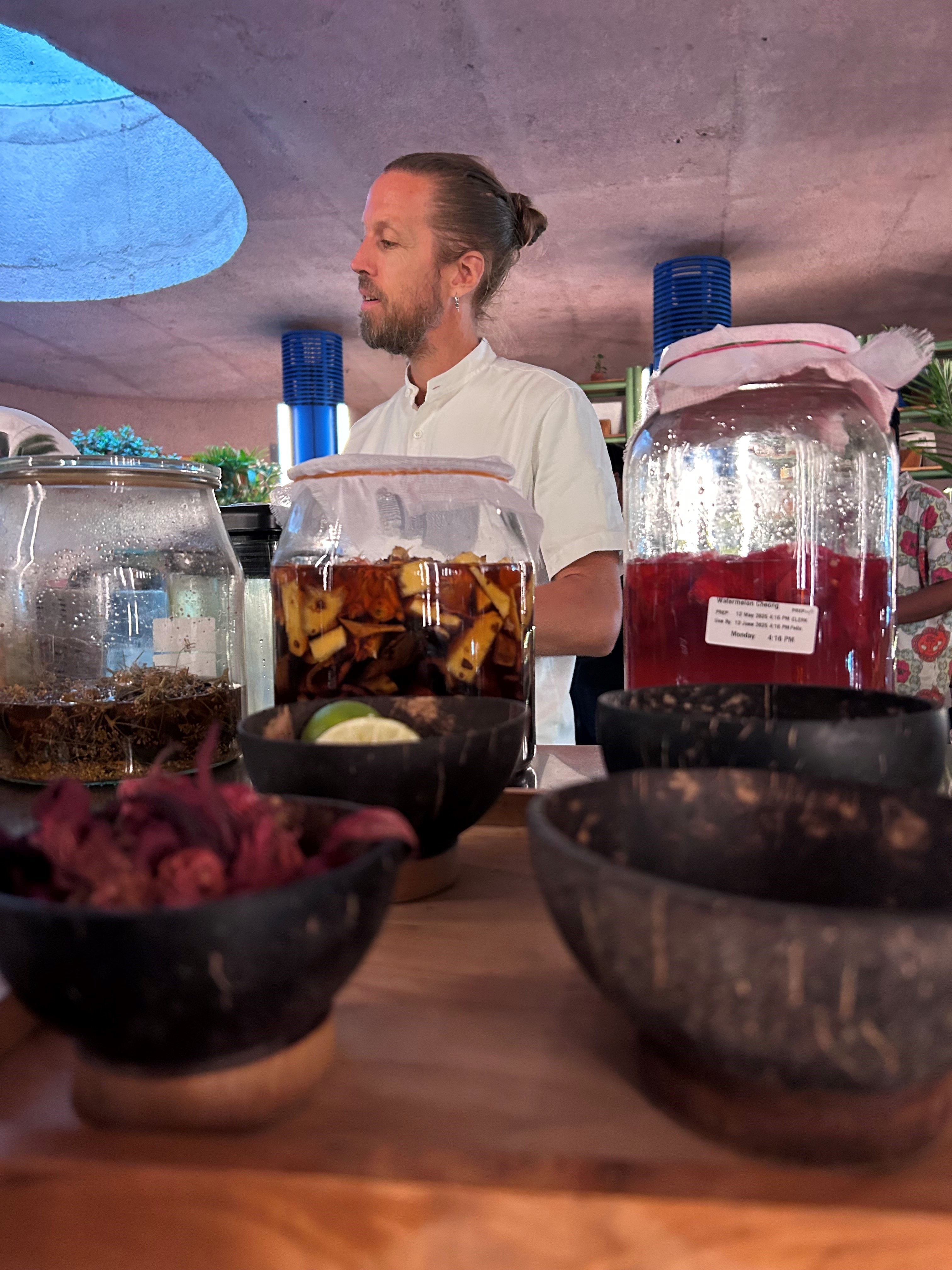 The kitchen and the bars work closely together, and the group hired a German chef, Felix Schoener, who became the R&D Chef at Potato Head Bali in 2024.