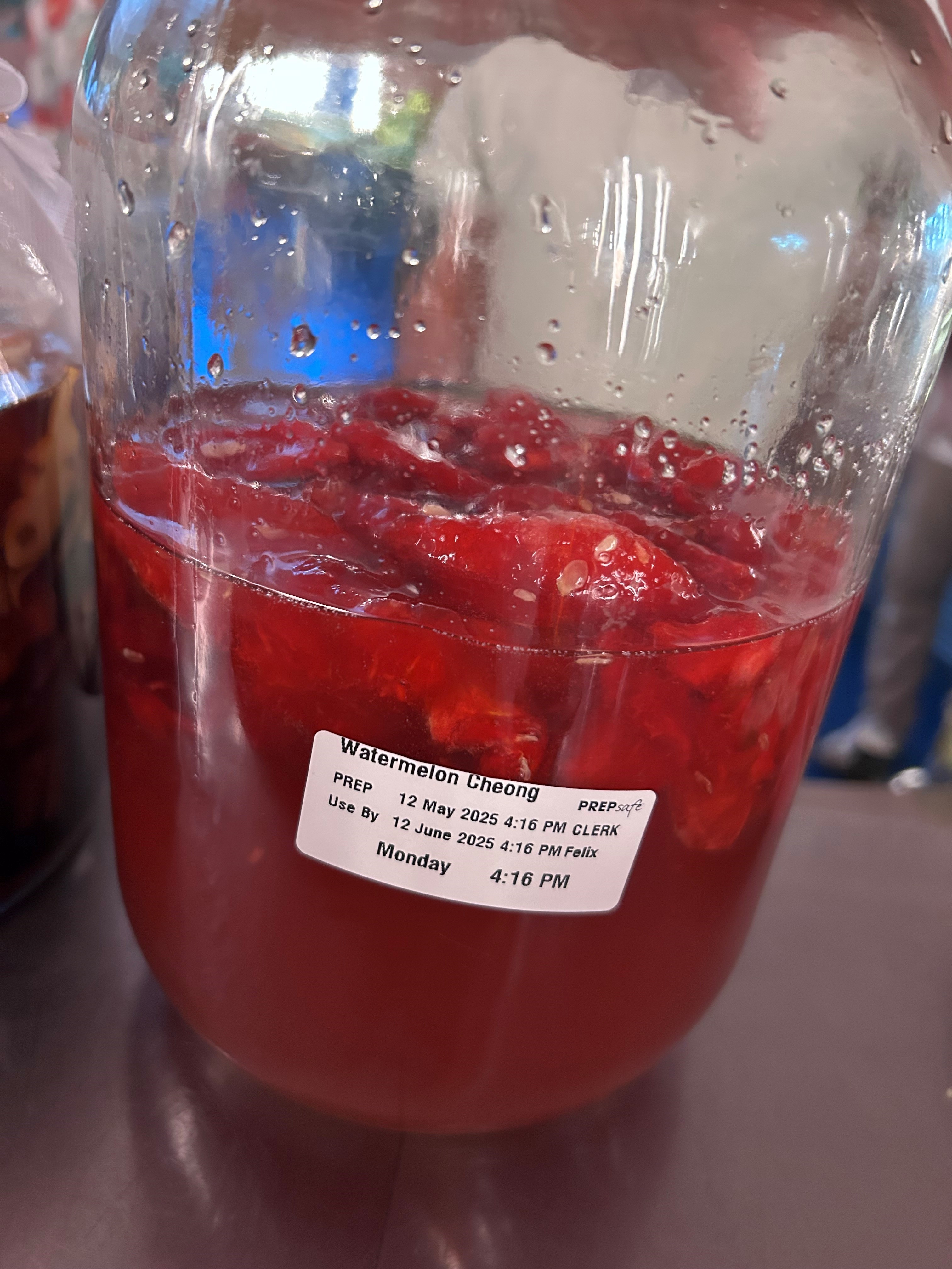 – Cheong (청): a Korean preservation method where fruits are mixed with sugar in equal parts (or 1.2:1 for high-sugar fruits) to create a syrup without cooking. This technique is used for watermelon rind Cheong, which becomes a base for sodas and cocktails.