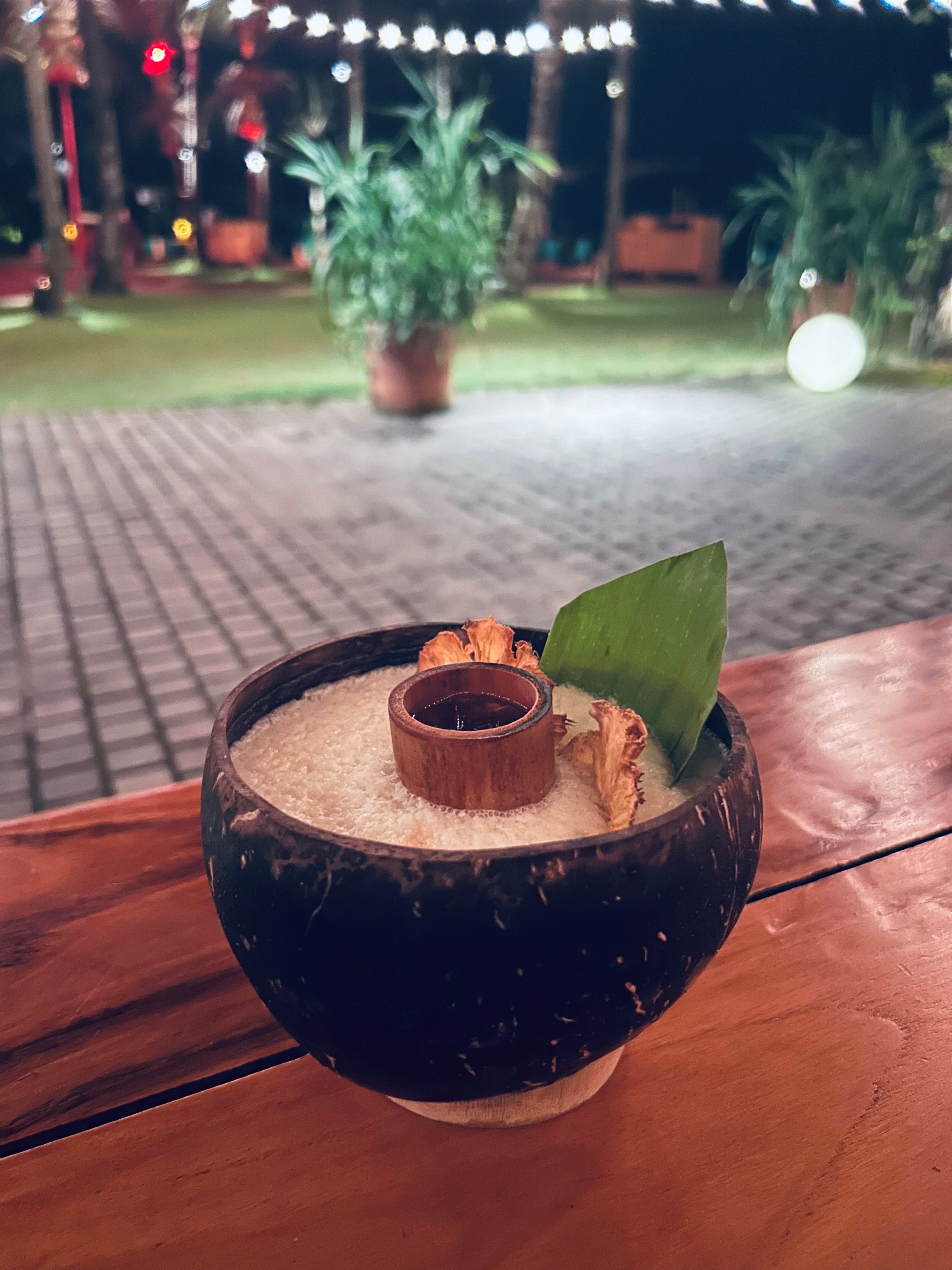 + Recycled Glassware: drinks are served in coconut shells, repurposed spirit bottles, and Seki glassware —a Japanese technique using recycled materials.