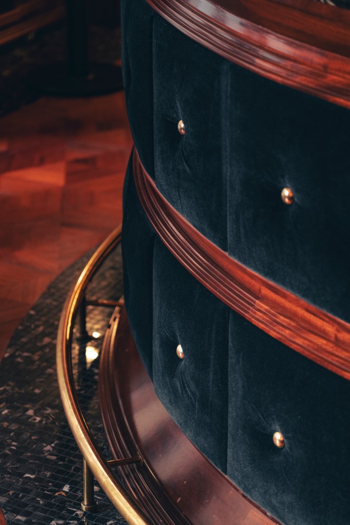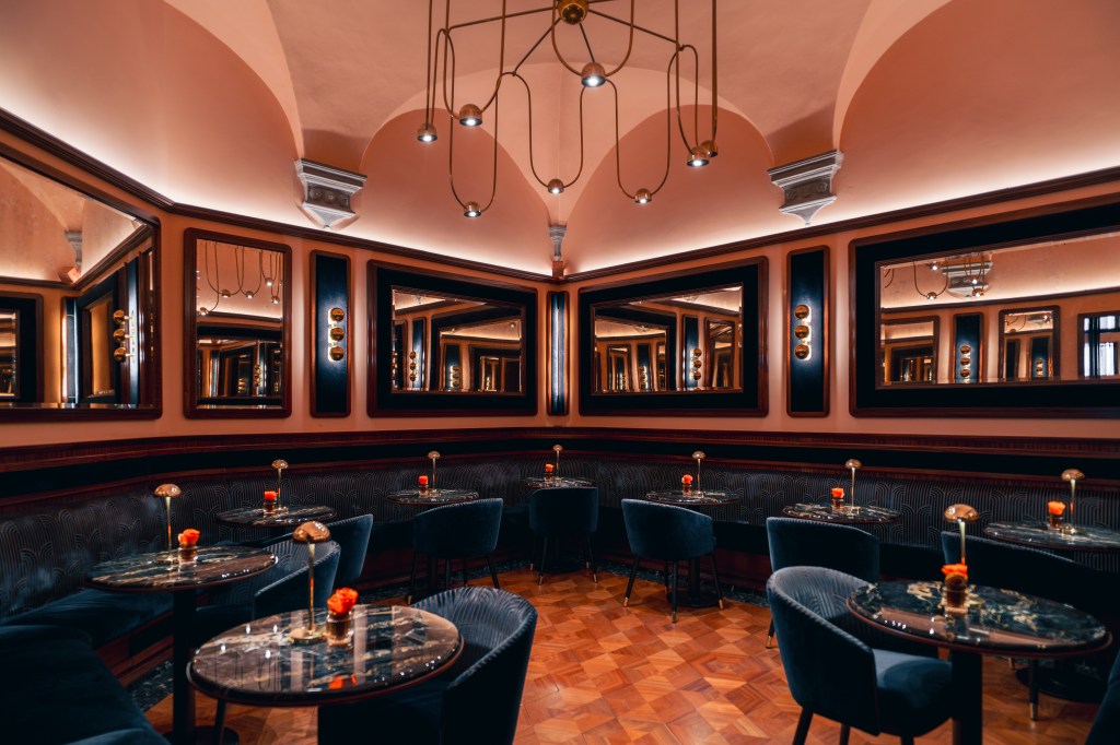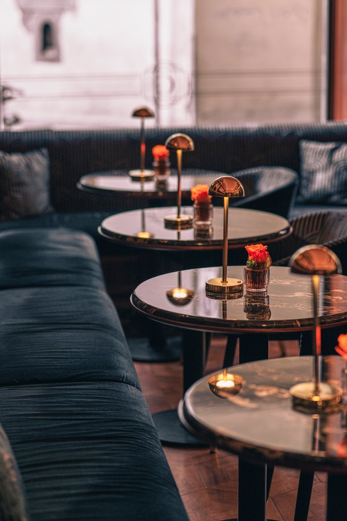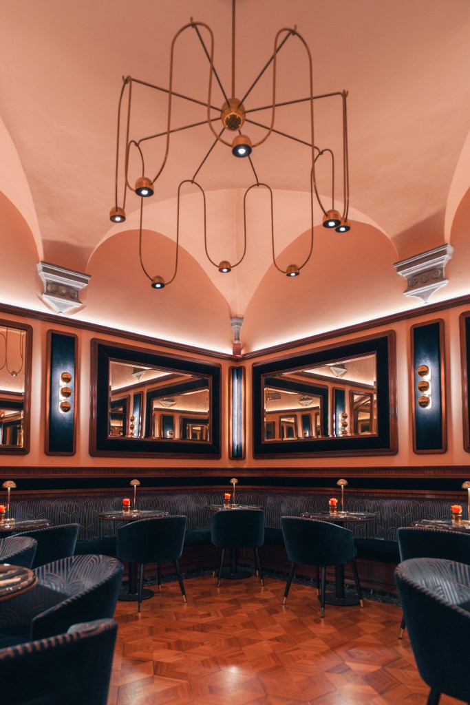 The approach avoids nostalgia and rather than freezing Giacosa in time, it has been re-established as a functioning cultural space, but still a must visit place in Florence. The interior draws on archival imagery while embracing contemporary comfort—high arched ceilings and warm wood panelling alongside a sculptural curved bar and deep blue velvet seating. The atmosphere is elegant, distinctly Florentine!